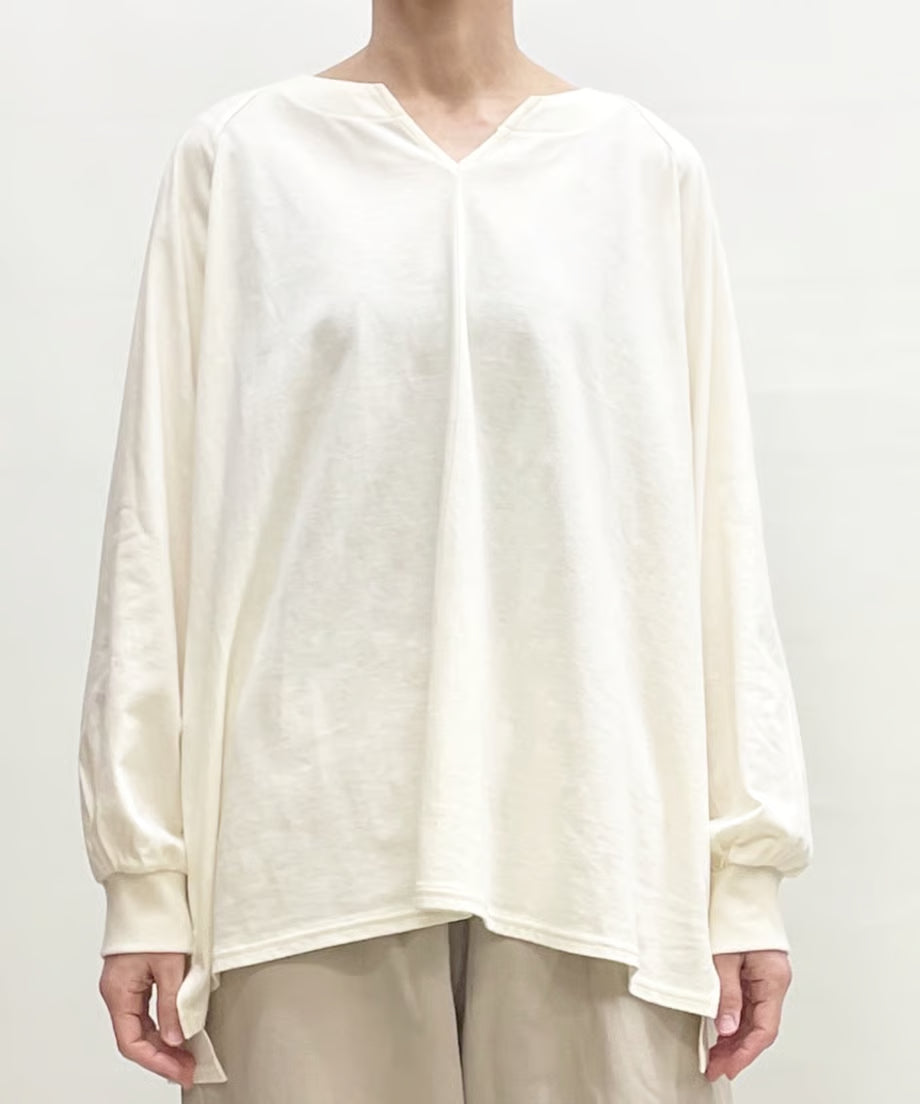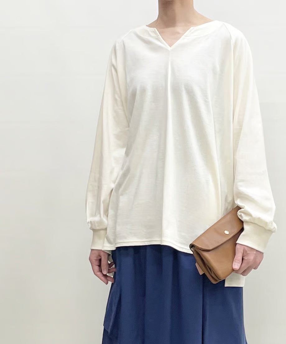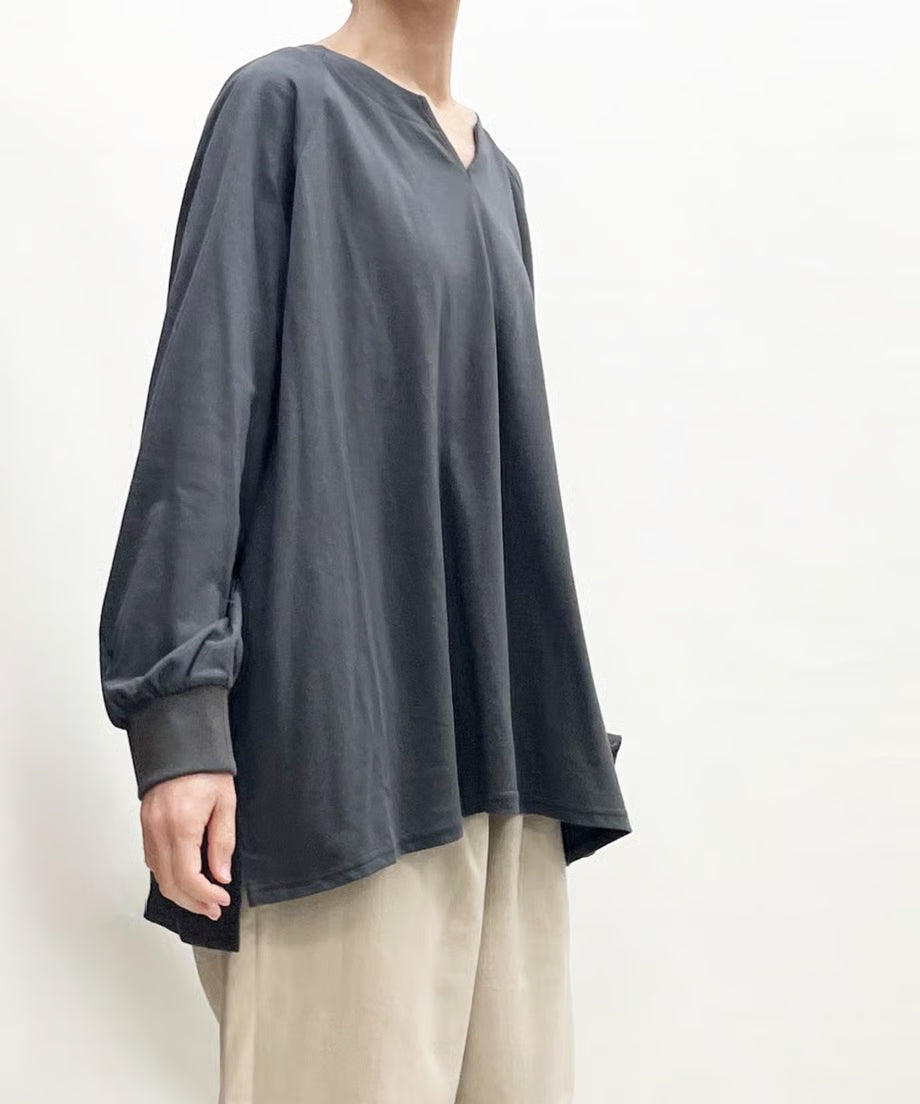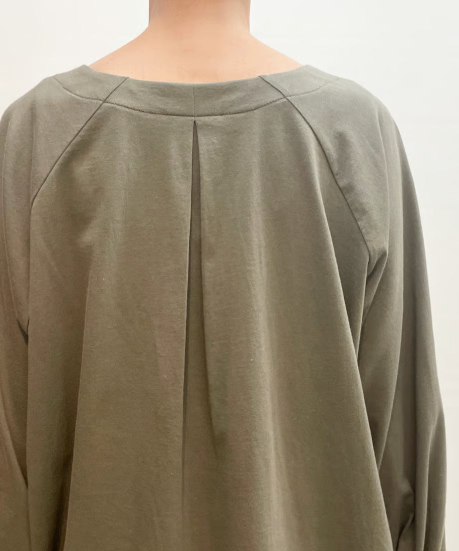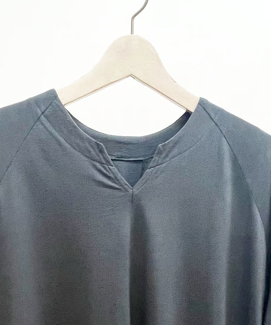 すぽっとかぶって、らくちんなこと、襟ぐりは洗濯してハンガーにかけやすい小さなアキがポイント。