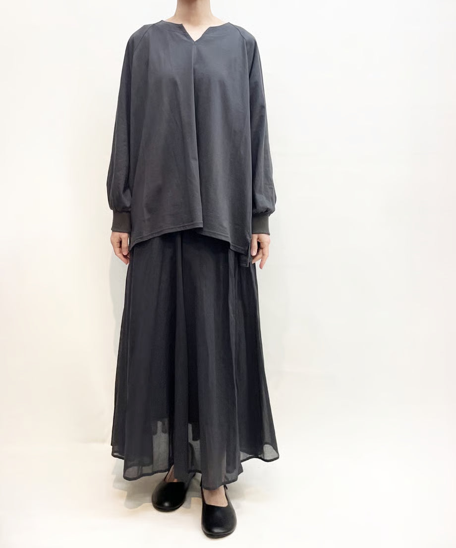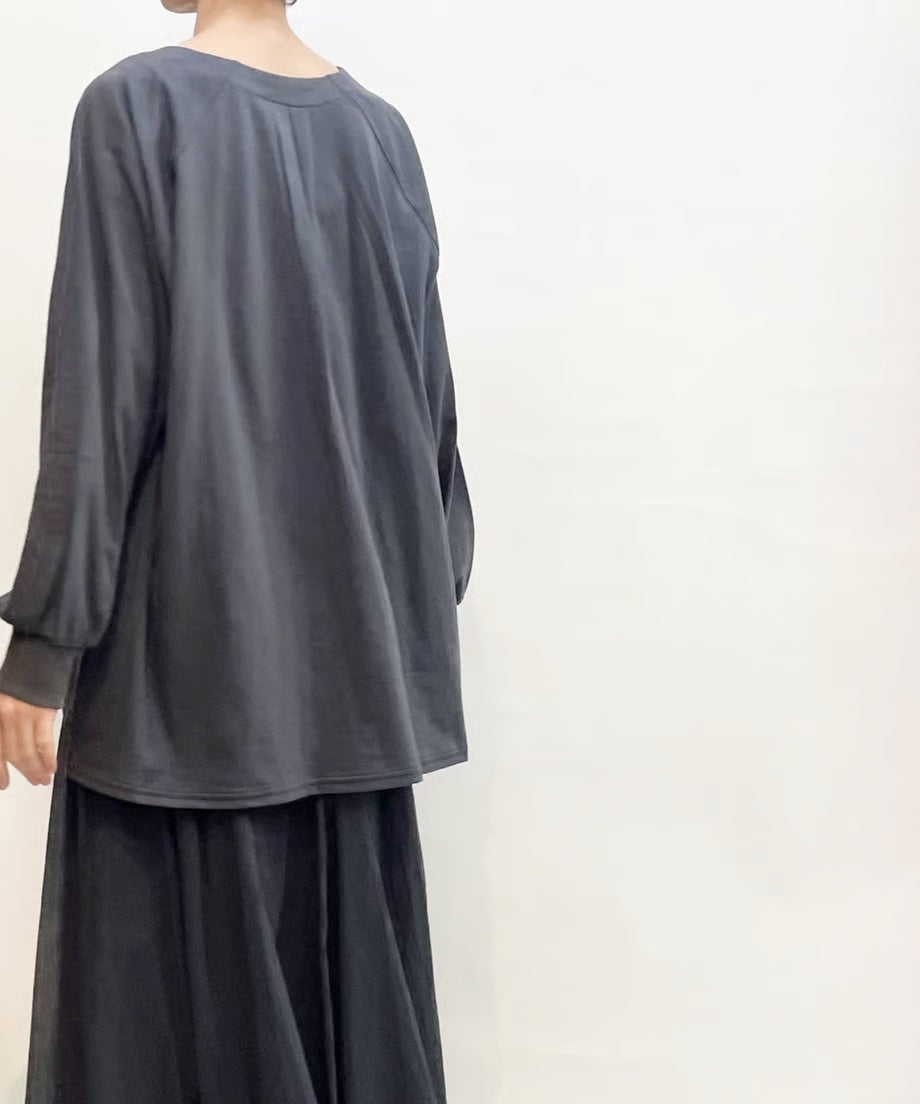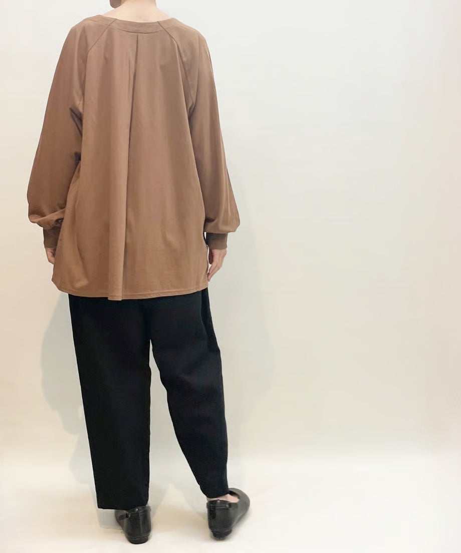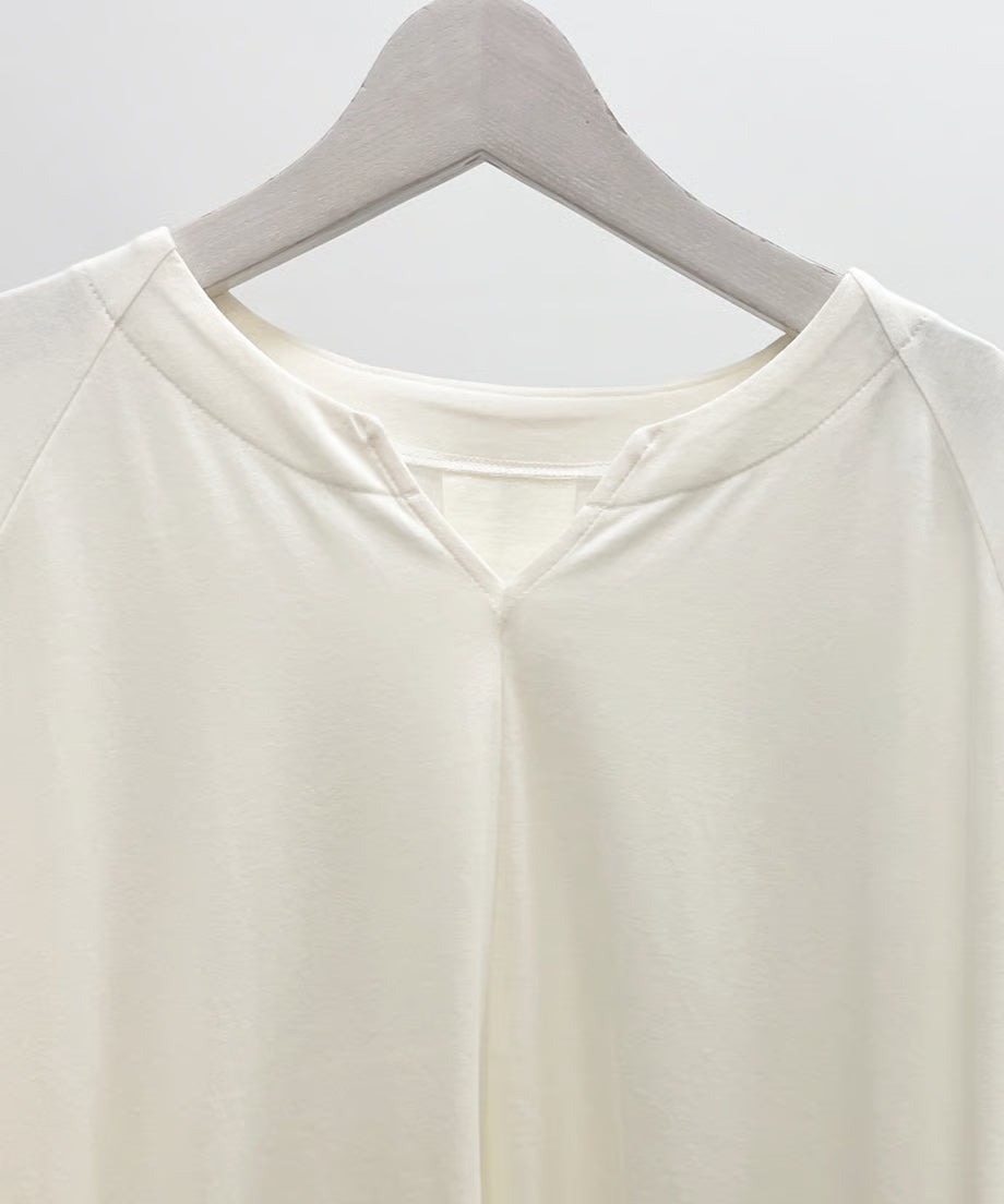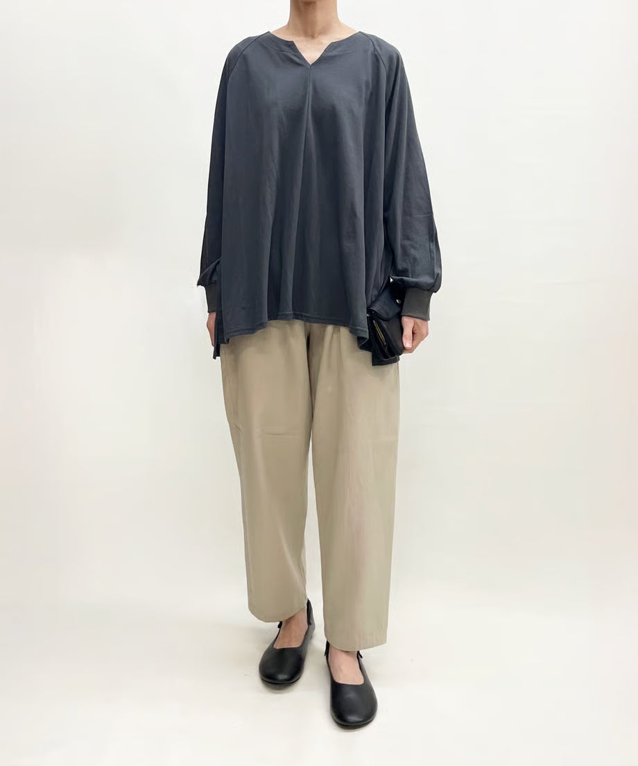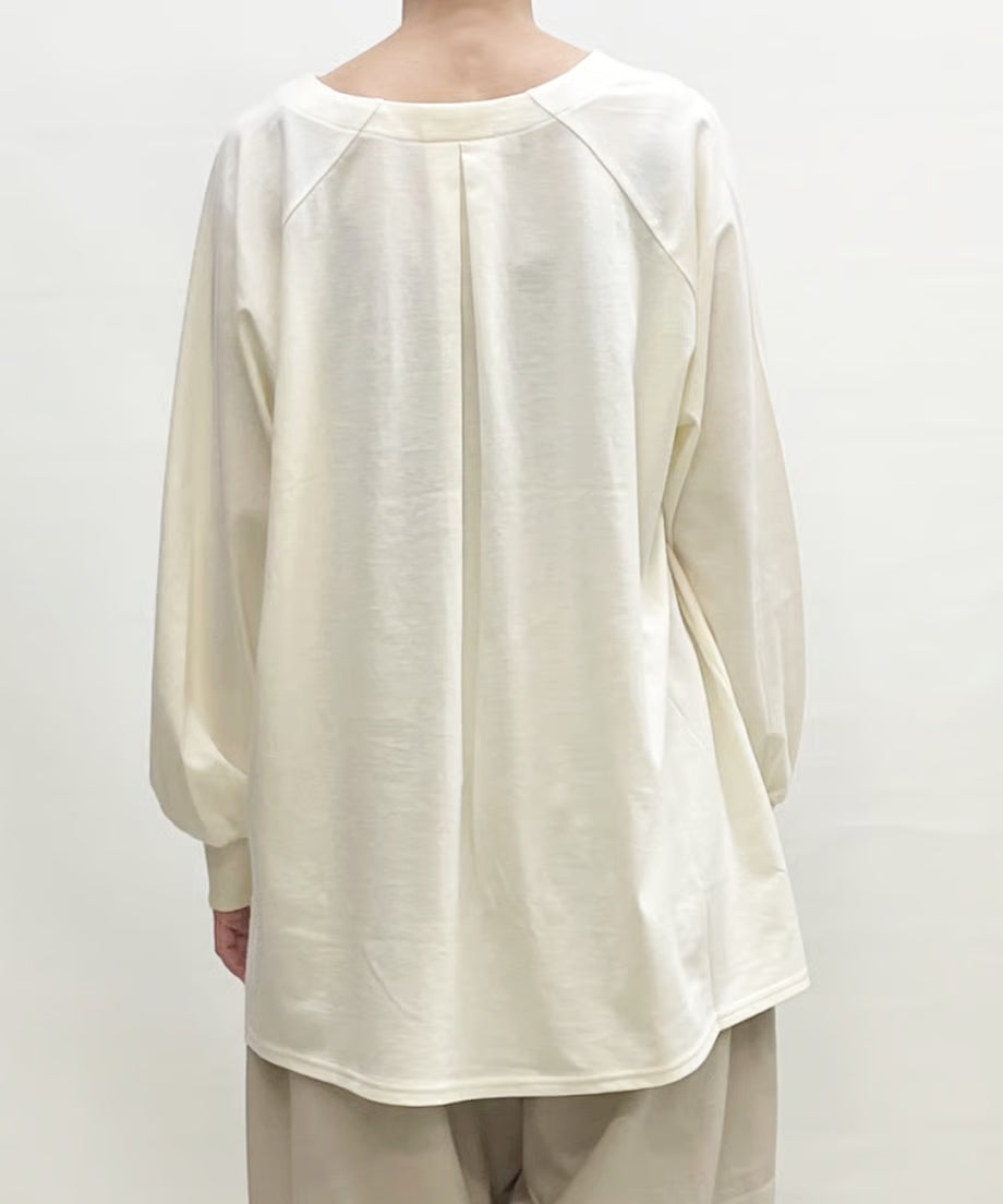 すぽっとかぶって、らくちんなこと、襟ぐりは洗濯してハンガーにかけやすい小さなアキがポイント。