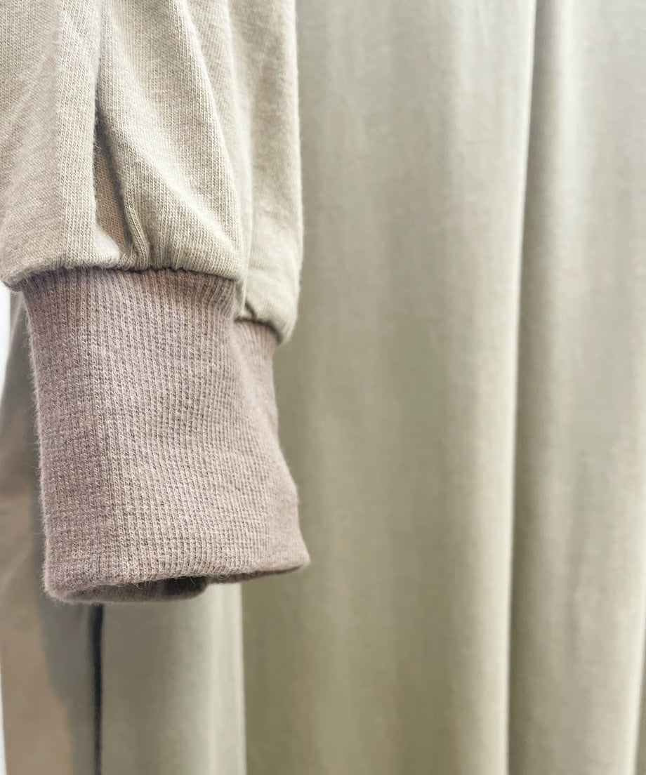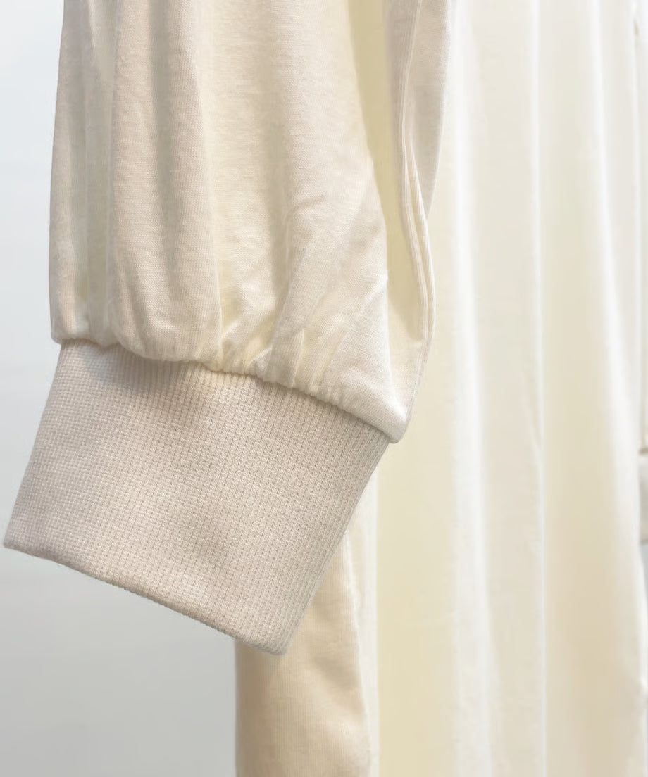 家に帰って、すぐ家事に取りかかりやすいように腕まくりできる袖口のリブ、ポケットもつけました。